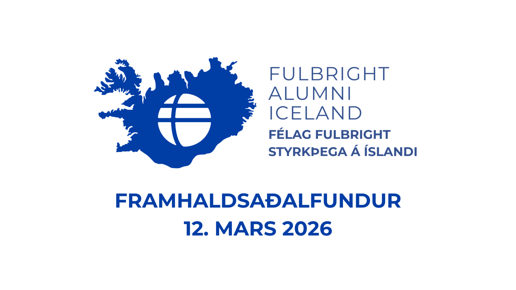Framhaldsaðalfunduri verður fimmtudaginn 12. mars 2026 kl. 16 hjá Fulbright stofuninni, Laugavegi 13 – 2. hæð. Einnig verður hægt að taka þátt í fundinum rafrænt á Zoom: https://us02web.zoom.us/j/86380814760?pwd=Lp3iALaXpAExi7kbawSAE4ybP1L3Sc.1